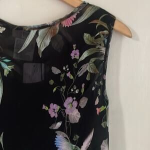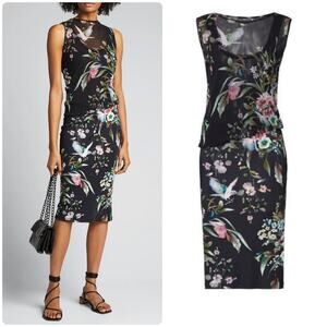 Fuzzi Bouquet Floral Hummingbird Print Sleeveless Tulle Jersey Sheath Dress