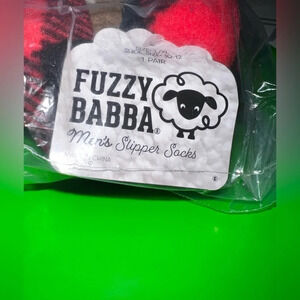 Fuzzy Babba ,NWT, men’s faux fur buffalo plaid check slipper sock with bottom grips XL shoe size 10 to 12 one pair