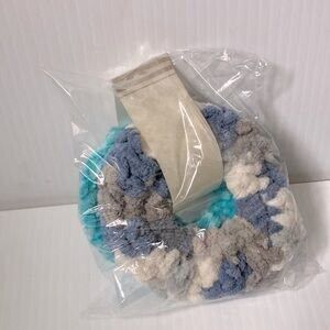 Fuzzy Chenille Scrunchies Camouflage Camo Blue Gray White and Teal NEW Set of 2