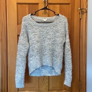 Grey & White Fuzzy Crewneck Sweater. Slightly shorter in the front than the back.
