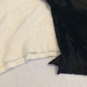 White one is M, black one is L. Both super stretchy material. Fuzzy and cozy. Black one has small side splits.