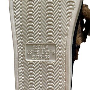 Fuzzy Cross Band Animal Print Open Toe Slippers Memory Foam Women's Medium 7-8