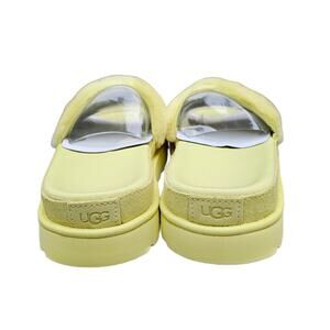 UGG Laton Fur Slides Size 10 Yellow Fuzzy Wool Embroidered Logo Sandal Suede Margarita EUC