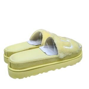 Fuzzy Fur Slides UGG Laton Size 10 Yellow Wool Embroidered Logo Sandal Suede EUC