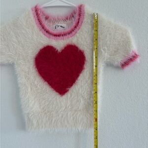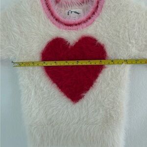 Fuzzy Heart Sweater ♥️ Juniors Tween Girls Varsity Heart White Pink Faux Fur