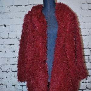 NWT Soft and Fuzzy Hoodie jacket. Has side pockets. Can be dressed up or down. Have two colors. Black (Size Small only) Wine (Size Medium or Large) blush color is only pictured for outfit idea.