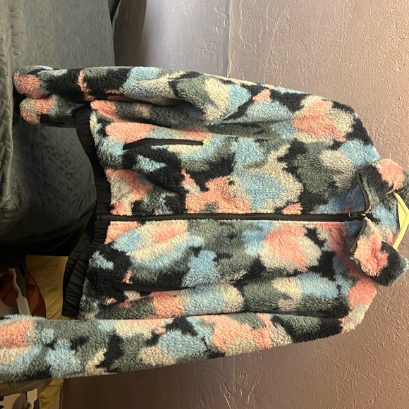 Size medium fuzzy jacket! Pink blue and grey. Brand new! Smoke free home!