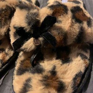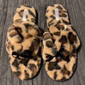 Brand new without tags! Fuzzy leopard flip flop slippers.