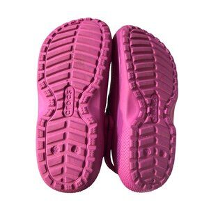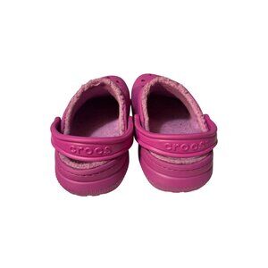 These Crocs clogs are designed for those who value both comfort and style. Featuring a cozy fuzzy lining, they provide warmth and are ideal for casual wear. Their vibrant pink color adds a fun touch, while the slip-on design ensures ease of use. A durable sole offers reliable traction.