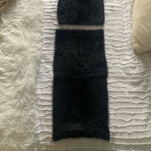 Cute black set with fuzzy/soft material. Very stretchy. Both pieces are size small. Worn once, perfect condition. I believe I purchased it at Lulus!