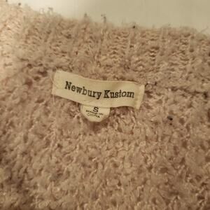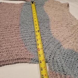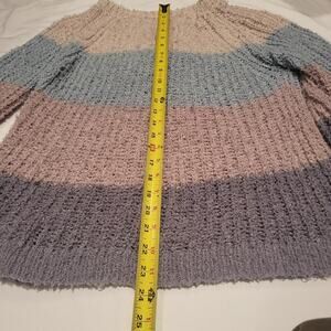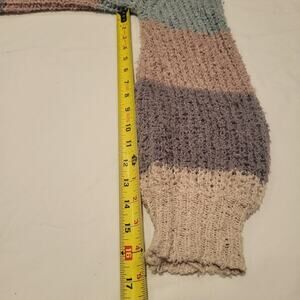fuzzy multicolor muted pastel striped soft comfortable warm cozy crochet sweater, women's size small.