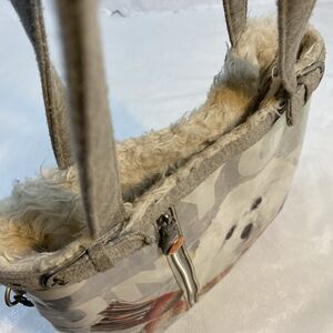 Fuzzy Nation Bichon Dog Tote Bag Purse Faux Fur Lined Sweater Backing Iridescent Silver gray