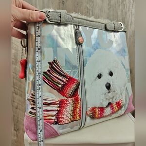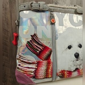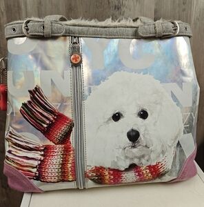 Fuzzy Nation Shoulder Bag Womens Dog Print Faux Fur Lined Double Handle Purse