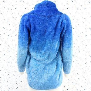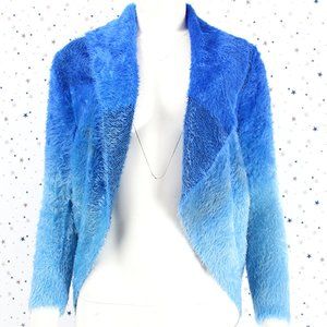 Fuzzy Ombre Cardigan Sweater Blue