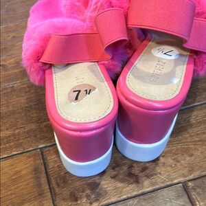 Forever 21 furry pink platform sandals! Worn 2 times! Sz 7.5