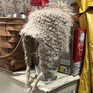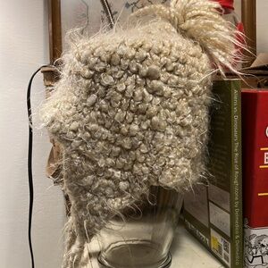 🌈 Fuzzy Pom Pom hat hand knit silk blend