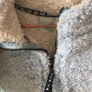 Fluffy, blue pullover with zip up. Super comfy and warm! (fits like M)