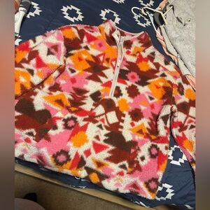 Tag says XXL but it’s more of a juniors so it fits an adult XL. Like new. Very warm and has a hoodie pocket.