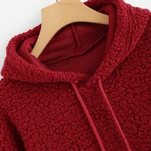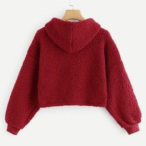 ❤️ Fuzzy Red Crop Drawstring Hoodie