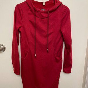 Knee-length fuzzy red sweatshirt dress - fuzzy throughout and very comfortable, never work and NWT.