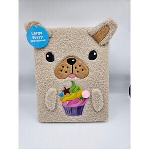 Fuzzy Sketch Book Notebook Journal Blank Pages Brown Dog Cupcake NWT