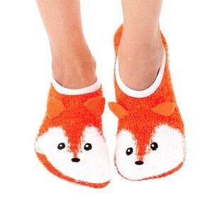 Fuzzy Slipper Socks w/ 3D Ears - Sly Fox - Orange