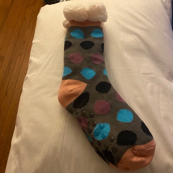 Never worn non slip fuzzy socks polka dotted super warm