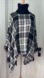 Fuzzy Soft Light Weight Chuncky Turtle Neck Plaid Gingham Kaftan Poncho Sweater.