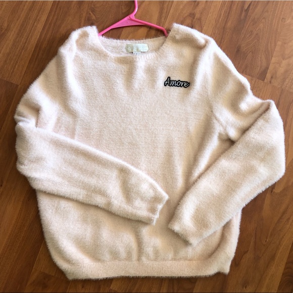 Plus size fuzzy light pink sweater.