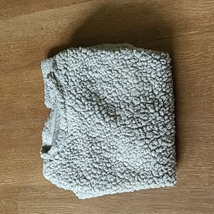 Grey fuzzy sweater, so soft and perfect for fall. not too heavy.