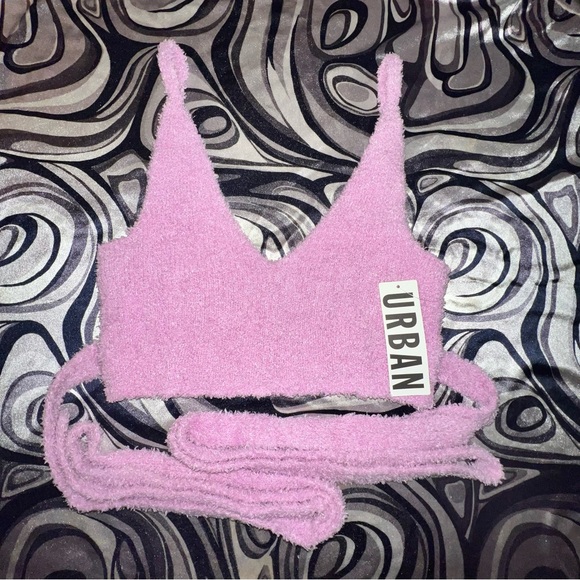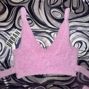Pink fuzzy lounge tank; has super long wrap ties