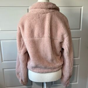 Fuzzy Teddy Bear Jacket Cropped Sherpa Coat Warm Winter Pink Size Small