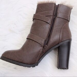 Fuzzy Zip Up Heeled Boots