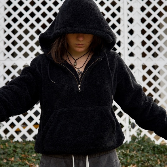 Black fuzzy drawstring Billabong hoodie with a half zip. Comfiest hoodie ever! Size small. Great. Condition