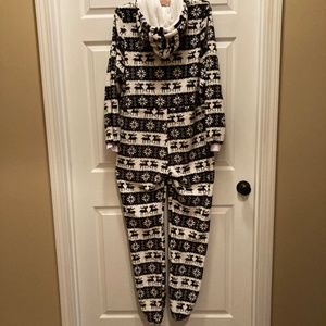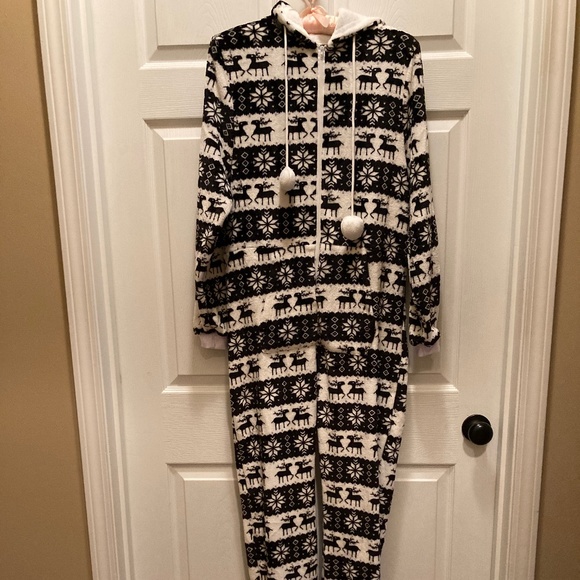 Fuzzy black/white Nordic Onesie women’s Small pajamas NWOT