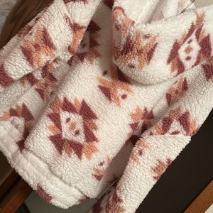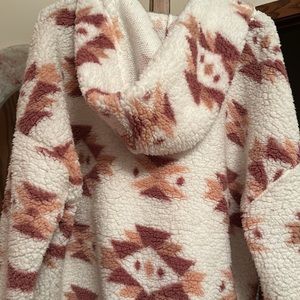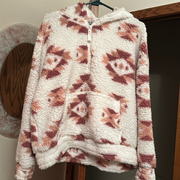No boundaries size large fuzzy half zip !!! Made from recycled materials. Fuzzy and warm! BEAUTIFUL TRIBAL PRINT. Good condition worn once
