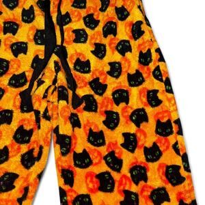orange halloween fuzzy pajama pants with black cats and pumpkins | was my fav tbh they’re just too small for me now :(