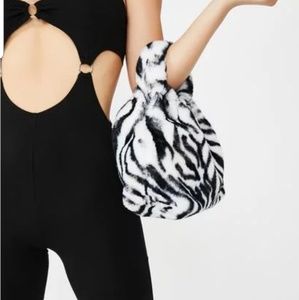 Faux fur leopard print bag