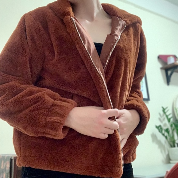 So soft - no tags but never worn. Perfect condition, burnt orange, fuzzy velvet-like material.