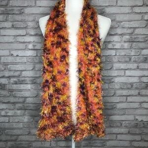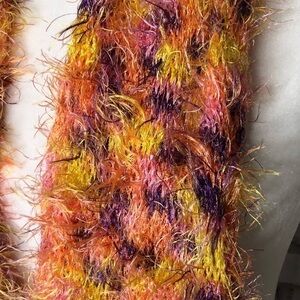 Infinity scarf. Very soft and fuzzy. Pink, purple and yellow. Stretchy.