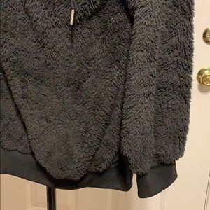 new. Worn once. Warm and SO fuzzy. Same fuzzy on the inside and outside (not often the case!) cuffed bottom and wrists. Drawstring hood and neck zipper.