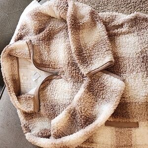 brand new with tags! fuzzy beige and cream half zip pullover Maurice's size Large