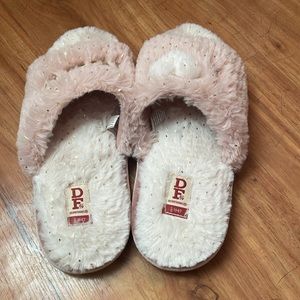 Open toe fuzzy slippers. Clean and perfect condition These are between size 7-8 slippers