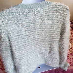 This is a beautiful mint green fuzzy sweater. So comfortable.. so soft. Brand new like condition. Worn once..