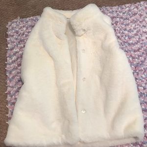 This kids sleeveless vest is very fuzzy and warm with 4 working buttons.