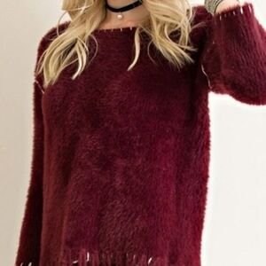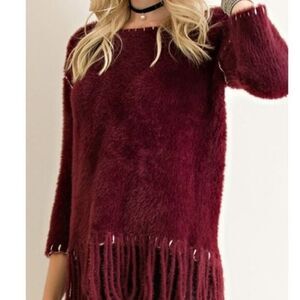 Fuzzy Fringe Sweater. This sweater is so thick and soft! Feels like soft faux fur blanket. Very cozy.