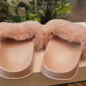Fuzzy Pink Slide Sandals Size 6 Excellent New Condition