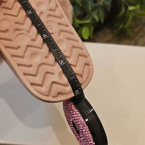 Cozy slide sandals with a fuzzy pink strap size 6, perfect for lounging.