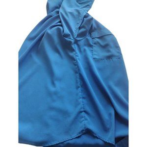 This Fylo women's top in size Large is a versatile addition to any wardrobe. The button-up style and long sleeves make it suitable for both casual and office wear, while the shoulder tabs and pockets add a touch of functionality. The blue color and basic style make it easy to pair with different bottoms and accessories. The top is perfect for those who want a stylish and practical piece of clothing.