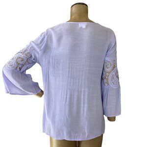 Fyve BOHO Lagenlook Top Bell Sleeve Crochet Accent Sz M Purple 253G